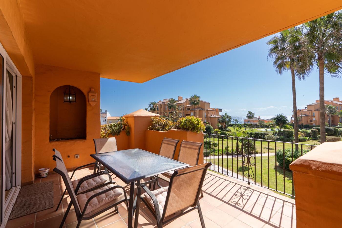 Los granados 2111, que cuenta con vistas al jardÃn, dispone de alojamiento con terraza y cafetera, y está a unos 2 min a pie de Playa de la Duquesa - El Castillo. Este apartamento, que tiene vistas al mar, piscina y jardÃn, también cuenta con wifi gratis.